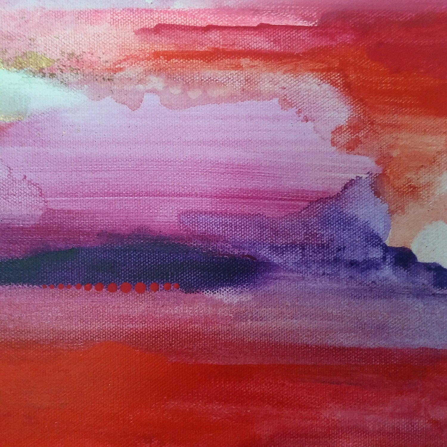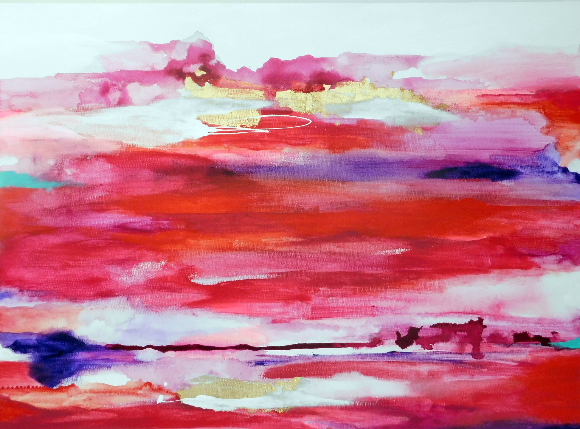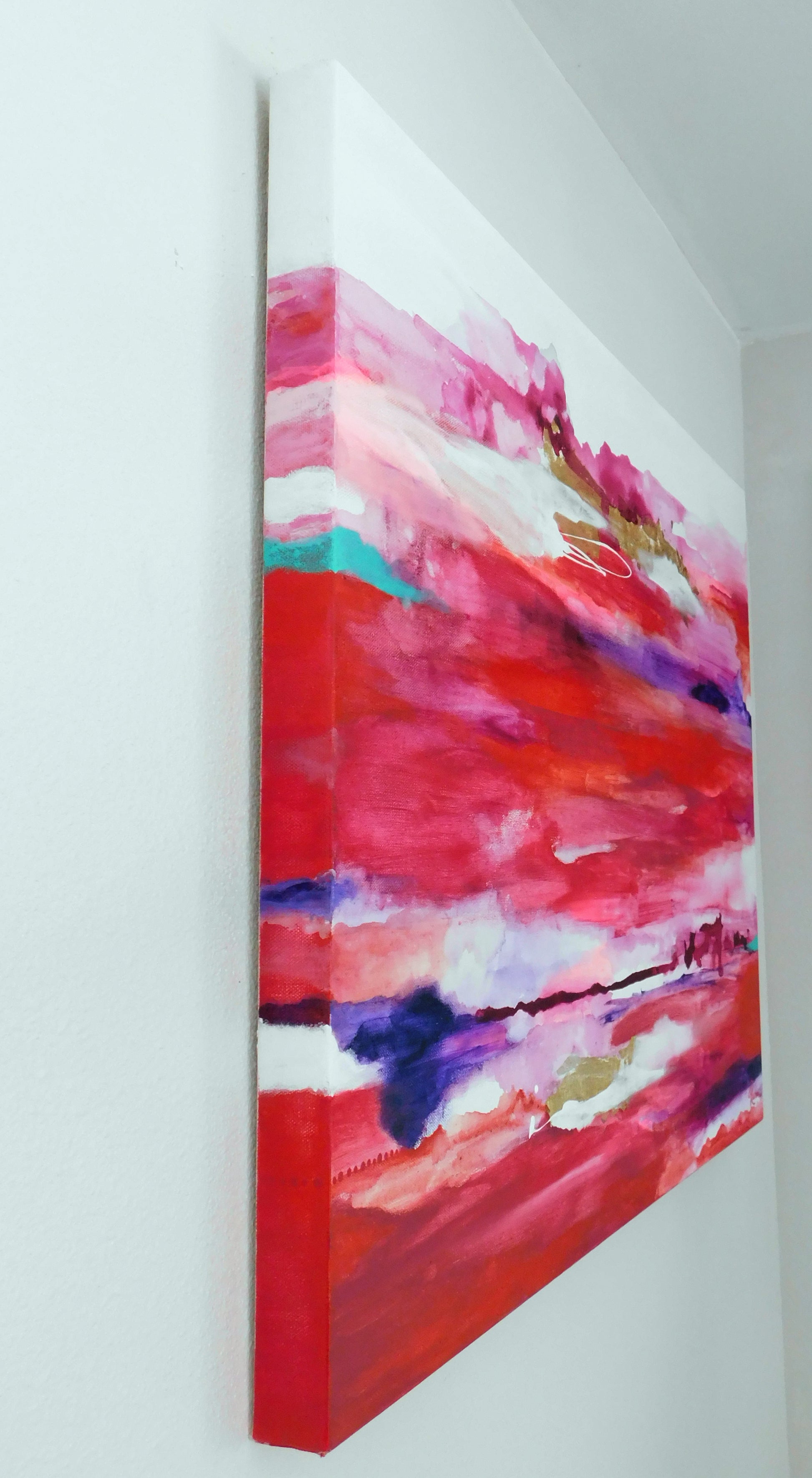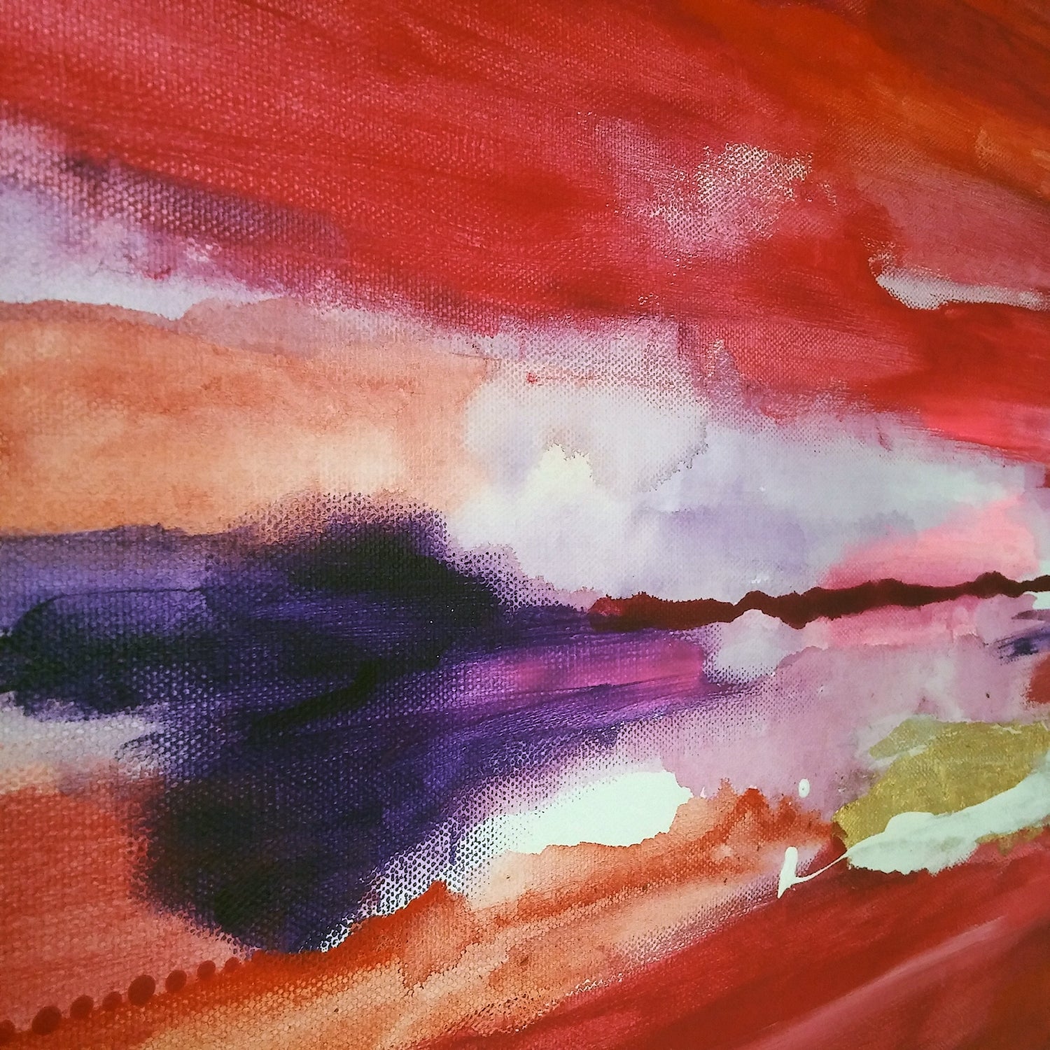An intuitive piece that came more alive with each layer. The color red was the focus, with the goal to stray from the idea of love and romance. Comes unframed and ready to hang.