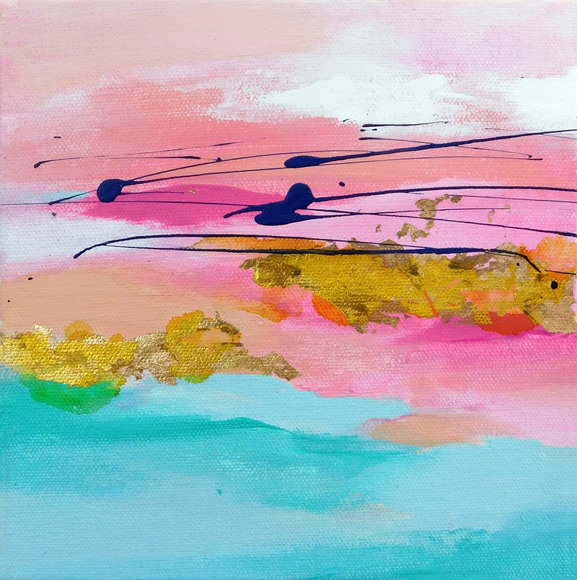 medium: acrylic, alcohol ink, and gold leaf