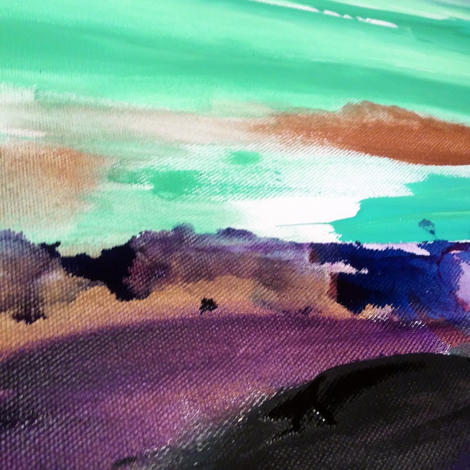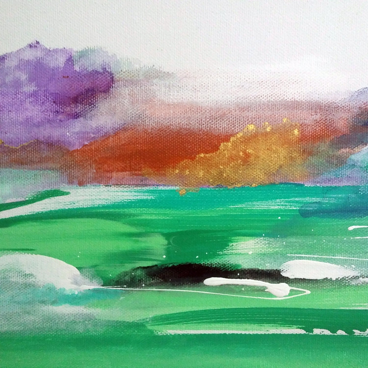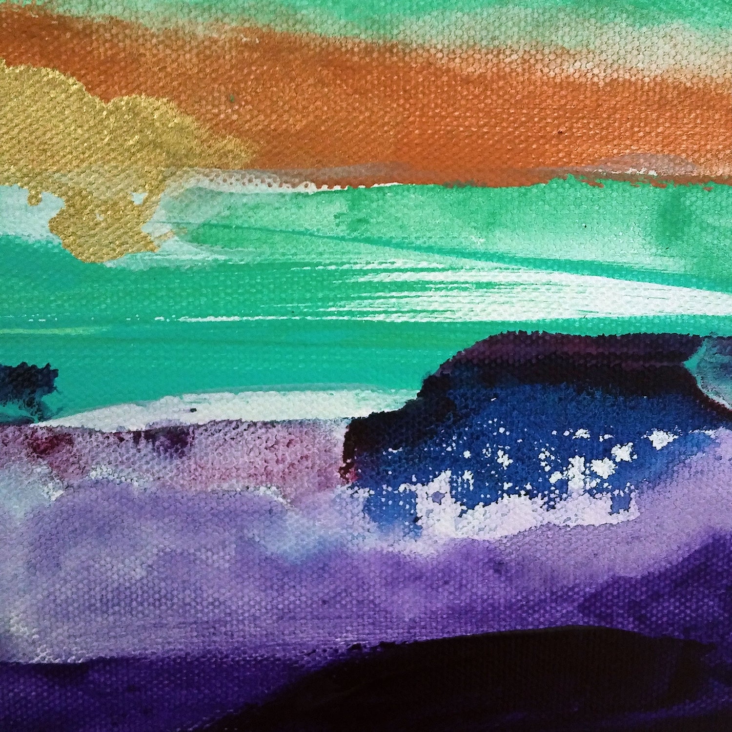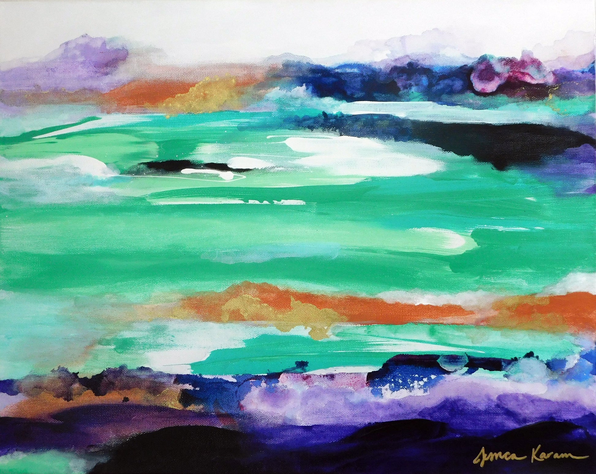 I tend to paint intuitively, experimenting with color-play and juxtaposition. This is a mixed media piece on a gallery wrapped canvas, made with acrylics and alcohol ink. Comes unframed and ready to hang.
